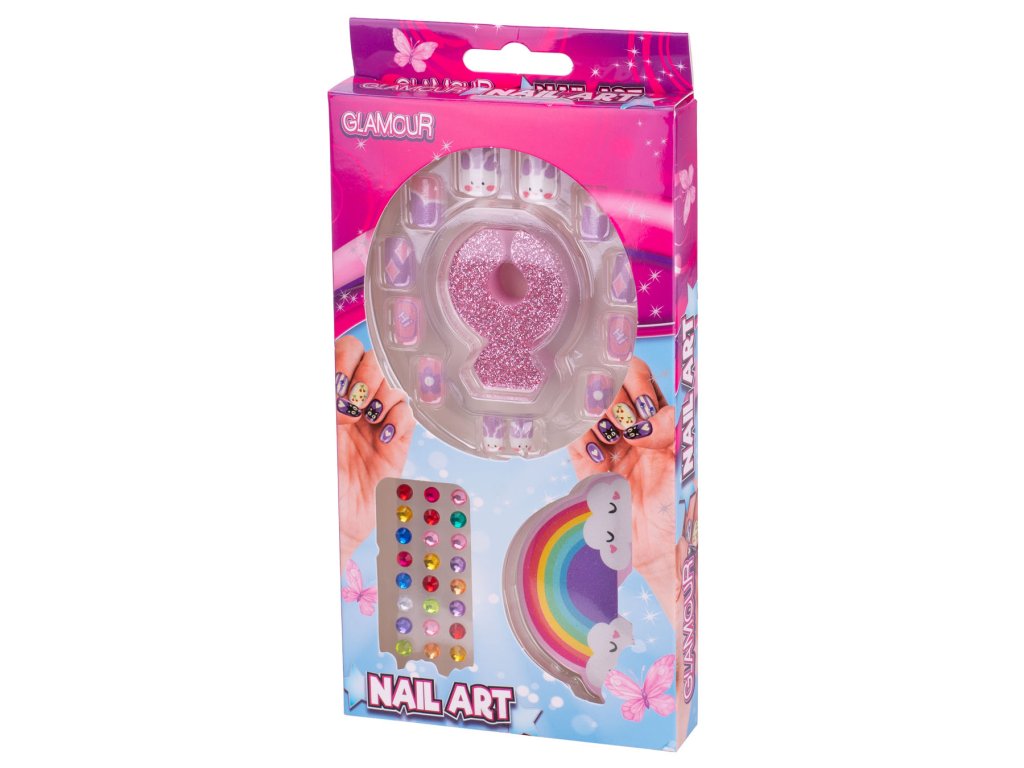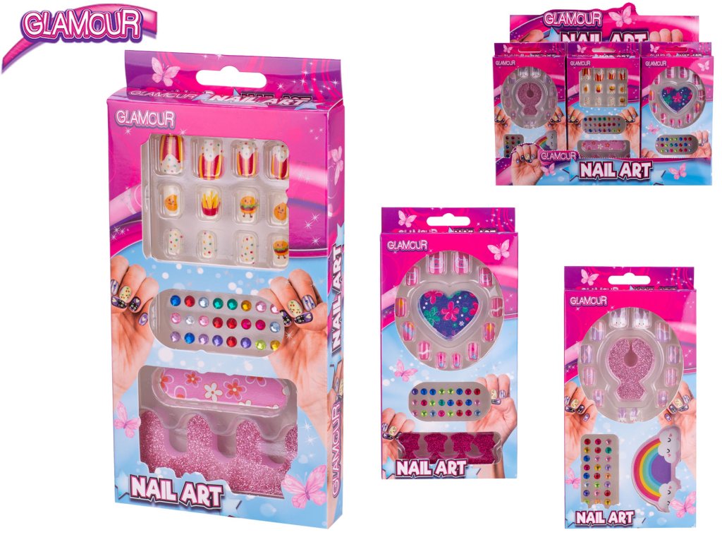 Glamour sada nalepovacích nehtů s diamanty a doplňky 3druhy v krabičce 24ks v DBX