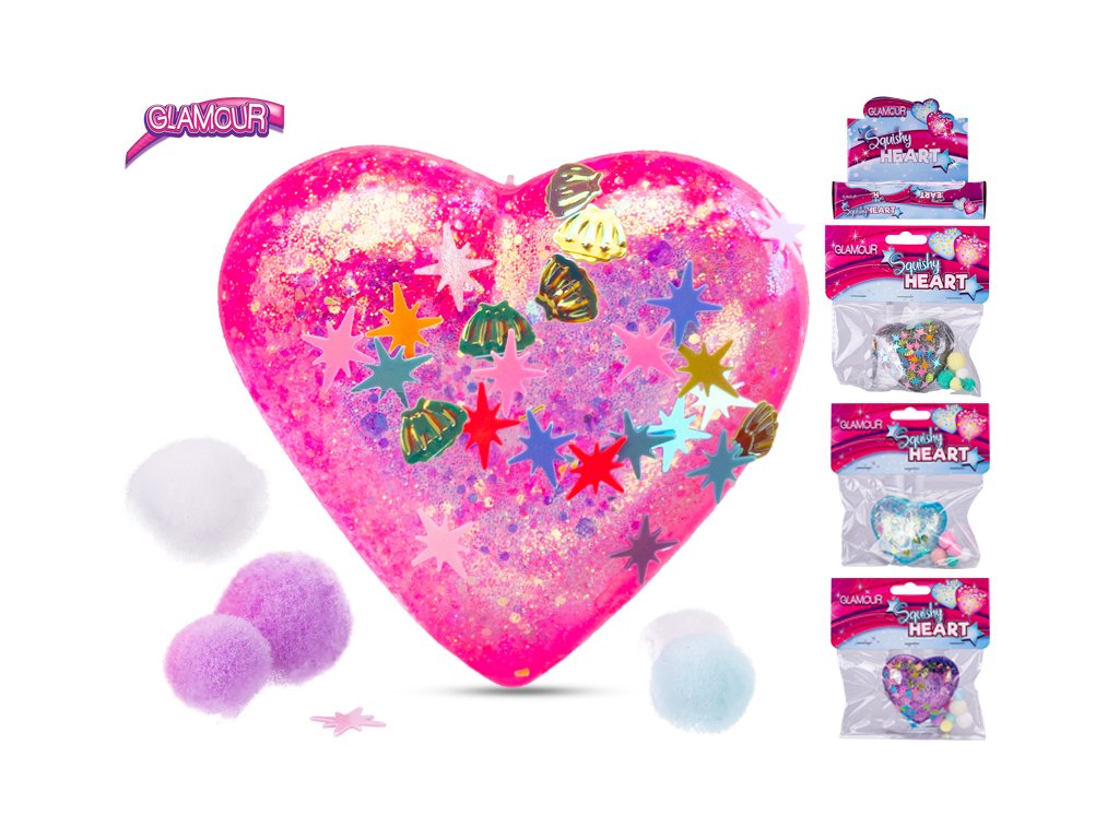 Glamour srdce strečové 6cm s flitry a doplňky 4barvy v sáčku 24ks v DBX