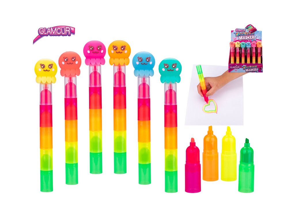 Glamour zvýrazňovač 18cm pětibarevný chobotnice 6barev 30ks v DBX