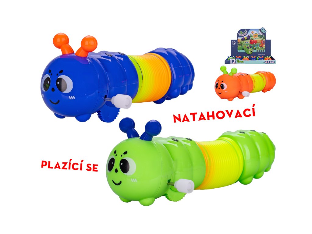 Housenka 13,5-40cm na klíček po natažení se plazící 3barvy 12ks v DBX