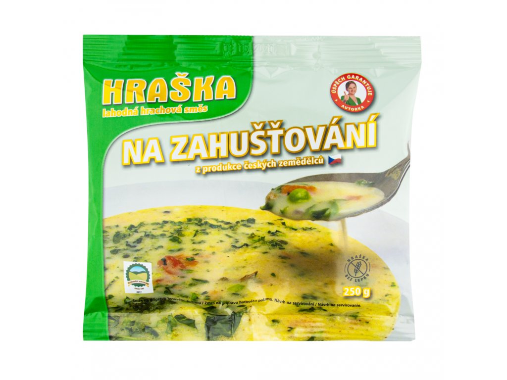 Hraška vychází z rodinné tradice a jde o ryze český produkt. Hraška neobsahuje lepek, konzervanty ani barviva. Zahustíte s ní polévky, omáčky, šťávy a další pokrmy. Může sloužit i jako pojivo v těstech místo vajec.Specifikace