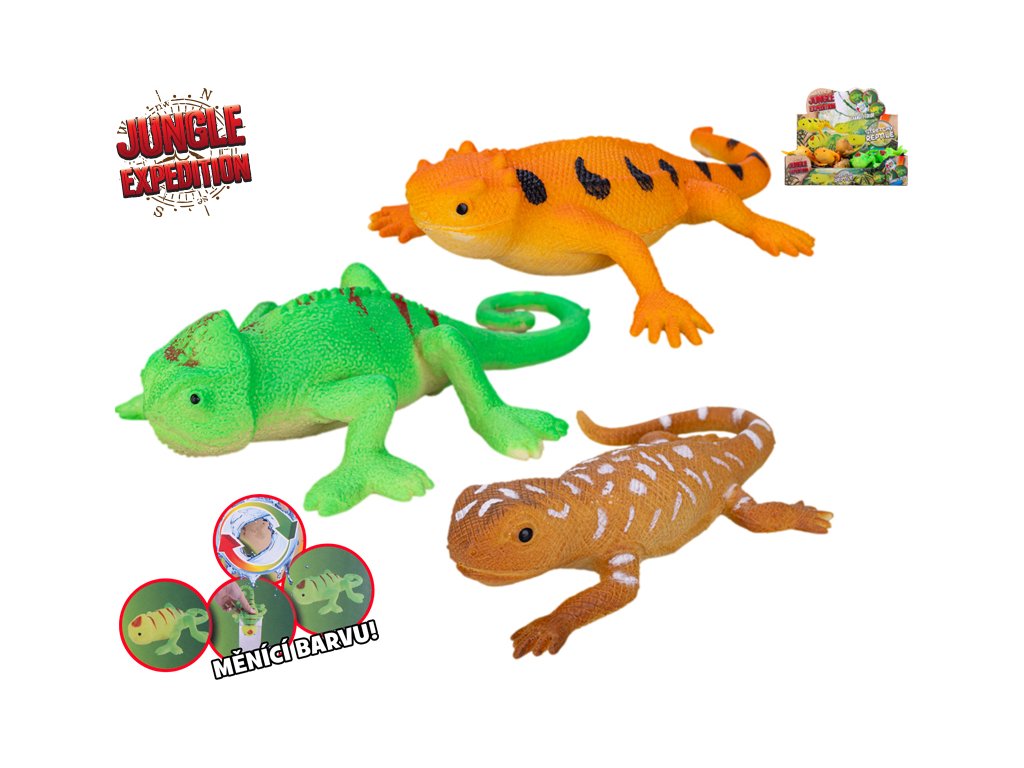 Jungle Expedition ještěrka strečová 14cm měnící barvu 3druhy 12ks v DBX