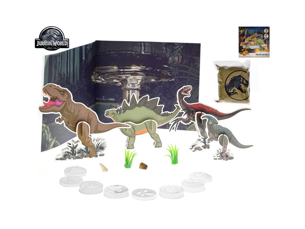 Jurský svět Dominion sada dinosauří rezervace s kinetickým pískem v krabičce