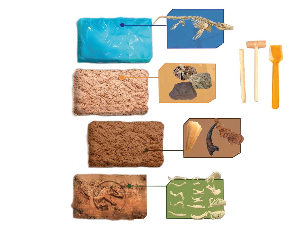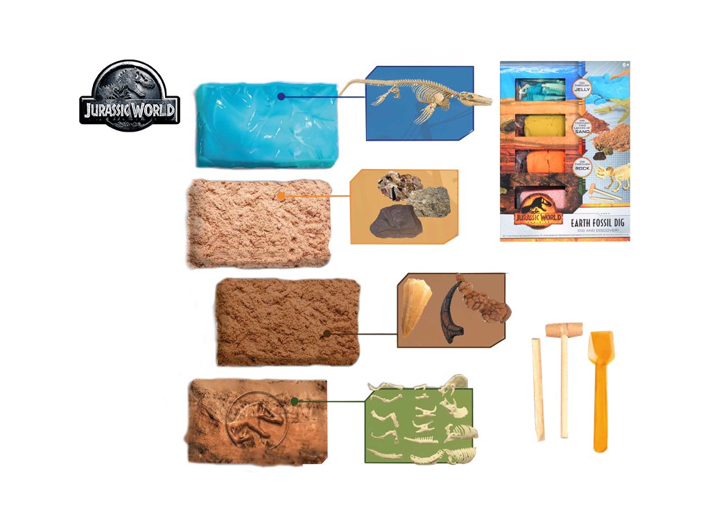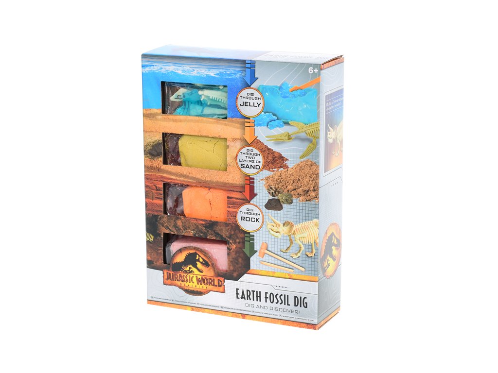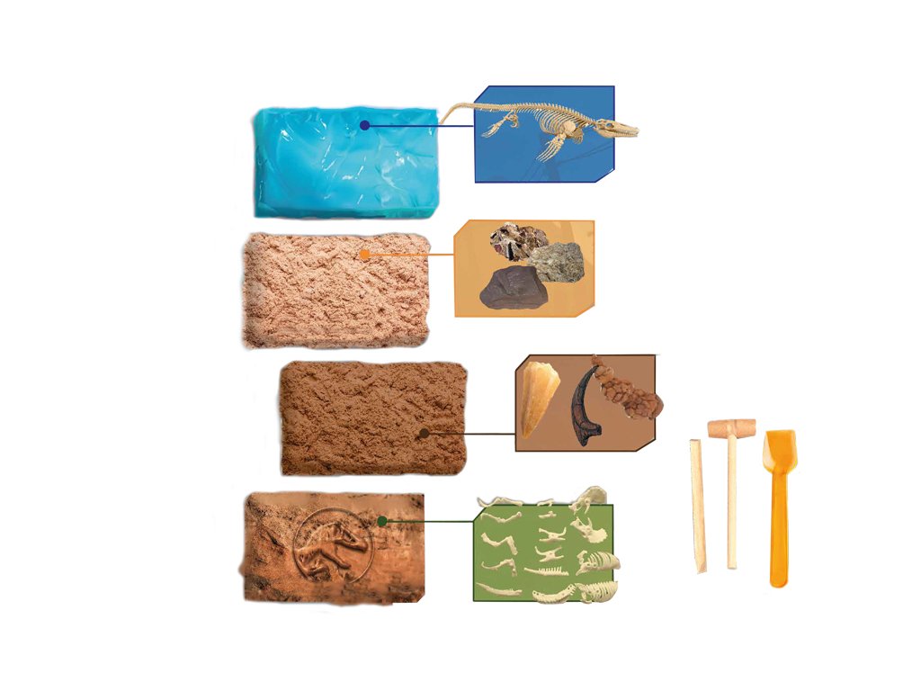 Jurský svět sada pro tesání dinosauřích pozůstatků 4ks zkamenělin v krabičce