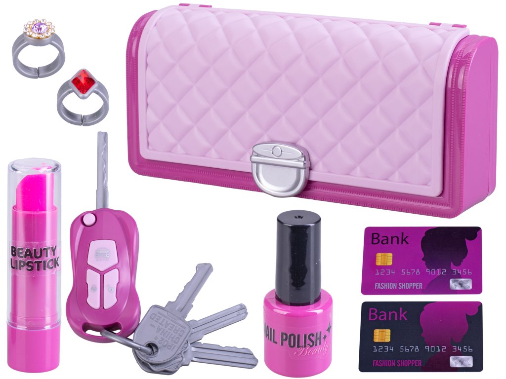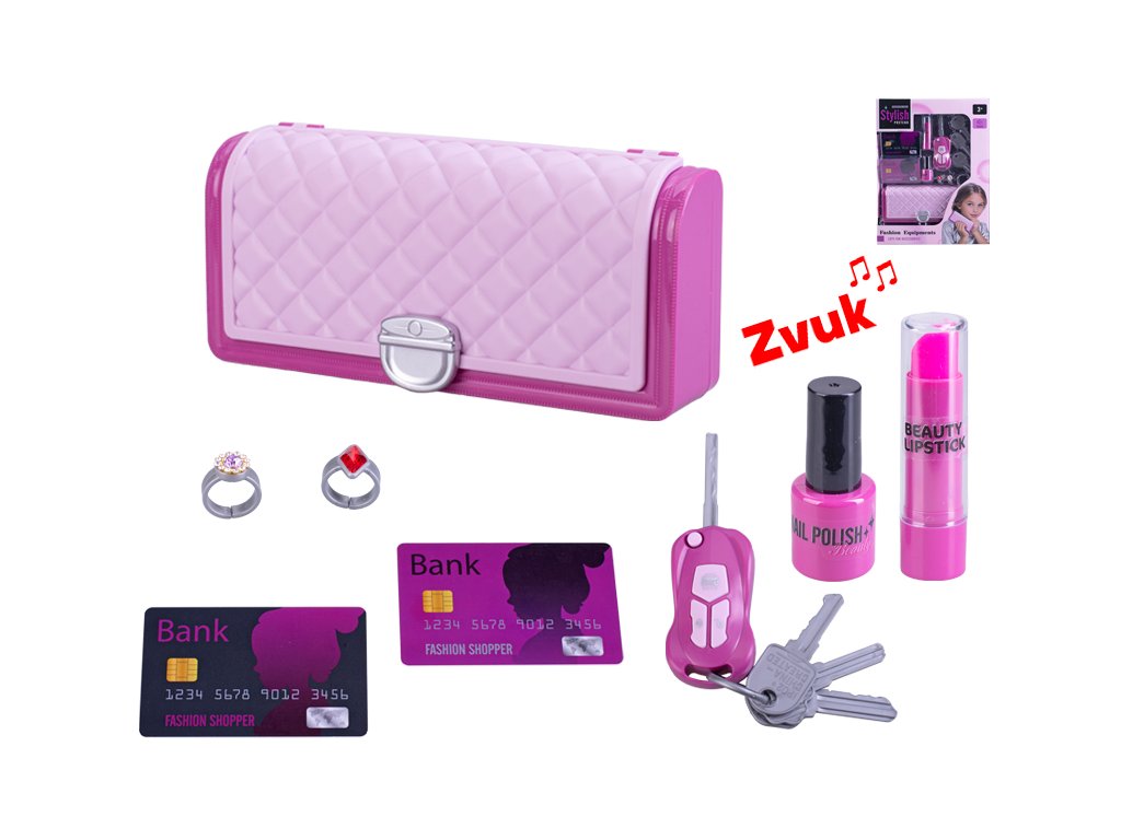 Kabelka 18,5x8cm s klíčkem od auta na baterie se zvukem a doplňky v krabičce