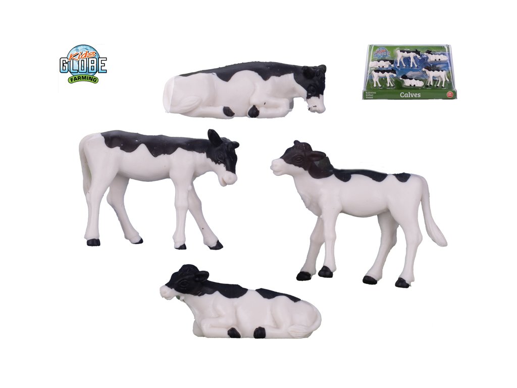 Kids Globe Farming telátka ležící/stojící 1:32 černobílá 6ks v krabičce