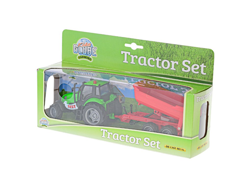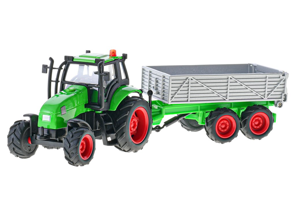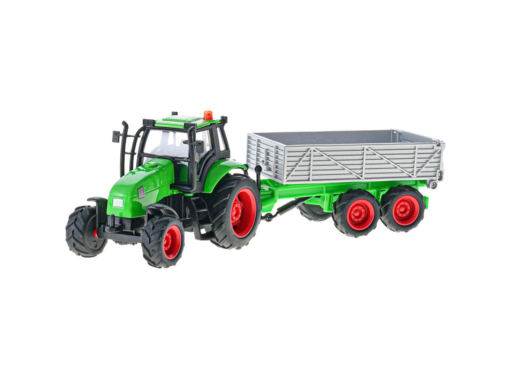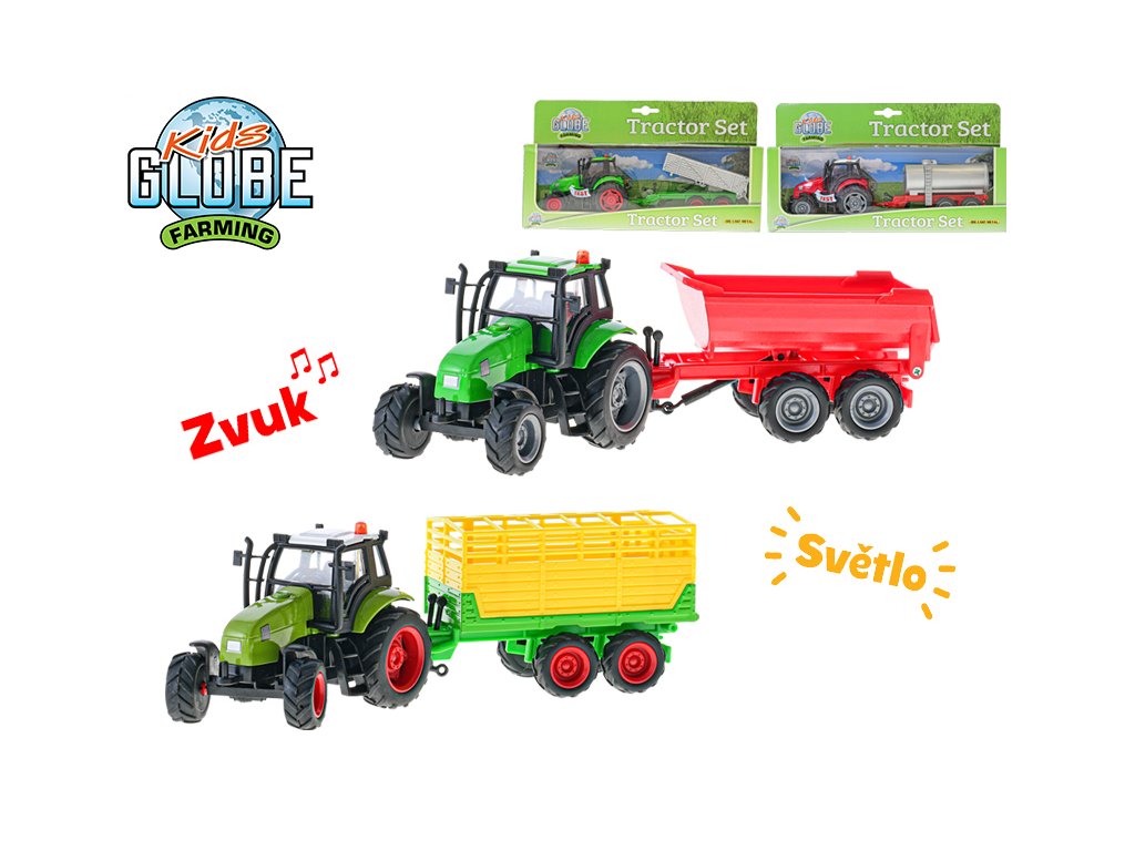 Kids Globe Farming traktor kov 25cm na setrvačník s vlečkou na baterie+světlo/zvuk 4druhy v krabičce