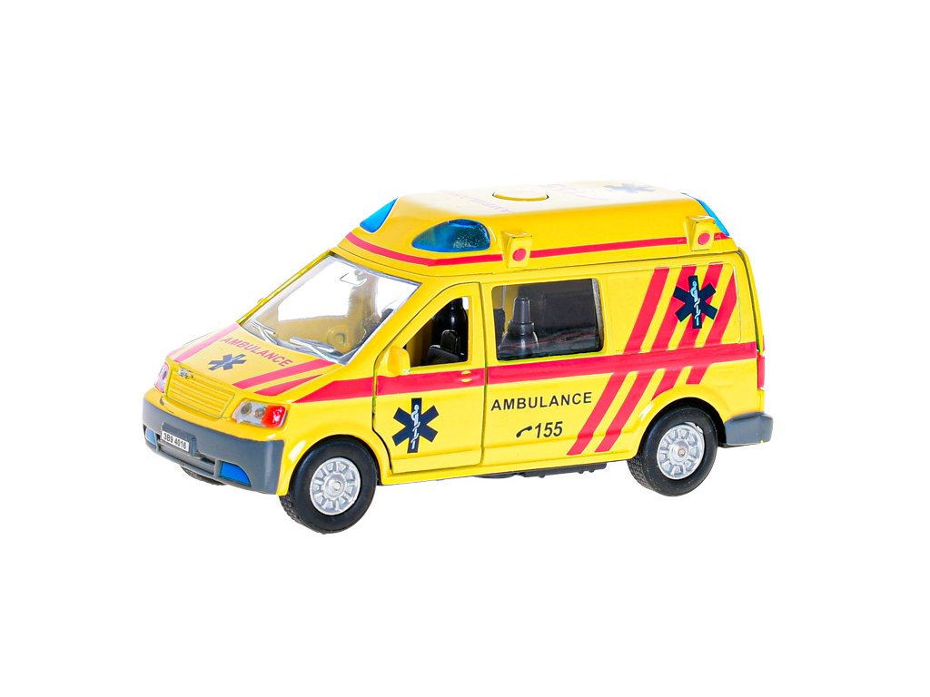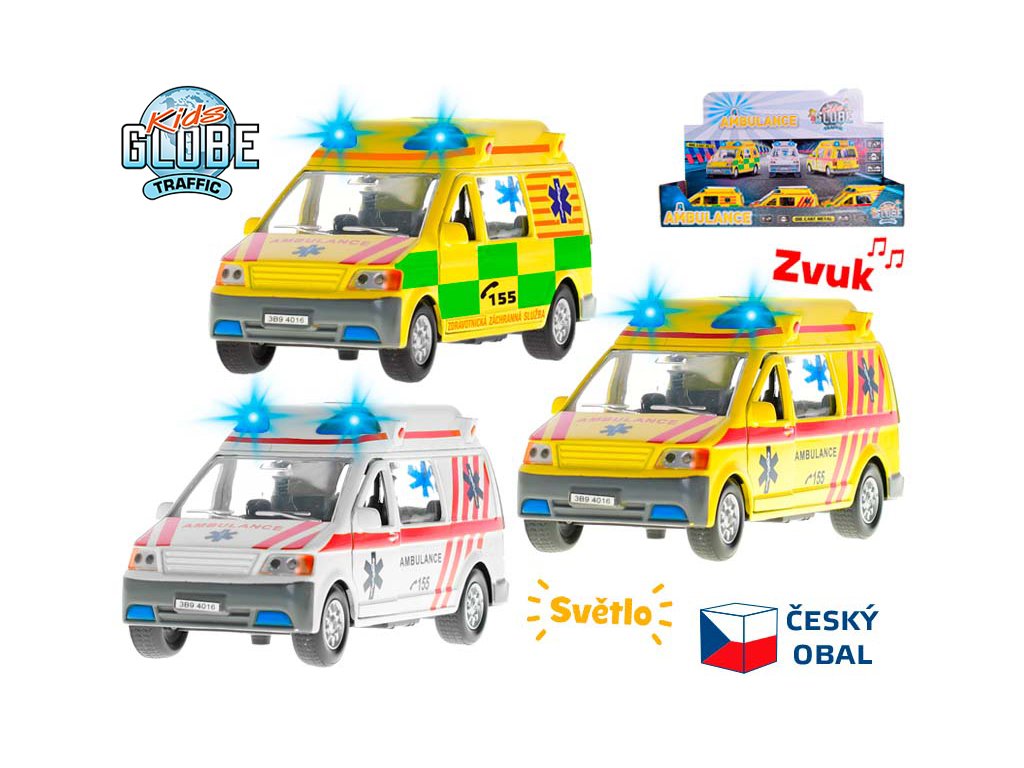 Kids Globe Traffic ambulance CZ 14cm kov zpětný chod na baterie světlo a zvuk 12ks v DBX