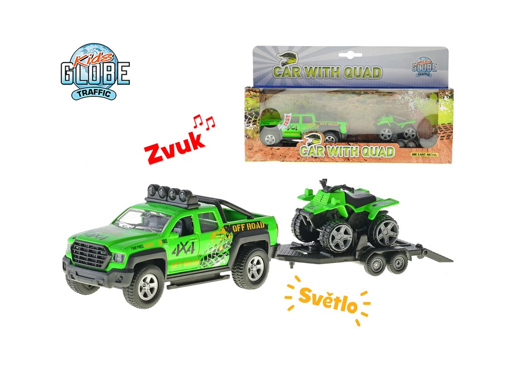 Kids Globe Traffic auto 13cm kov zpětný chod se čtyřkolkou na baterie světlo a zvuk v krabičce