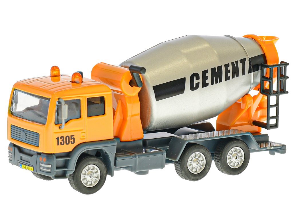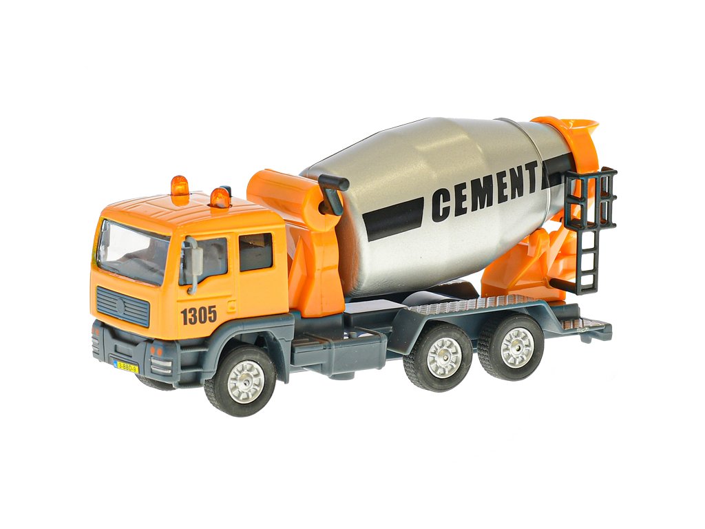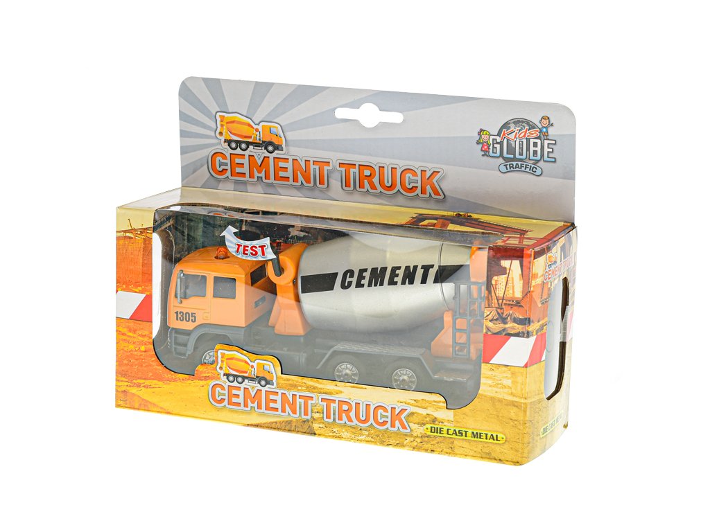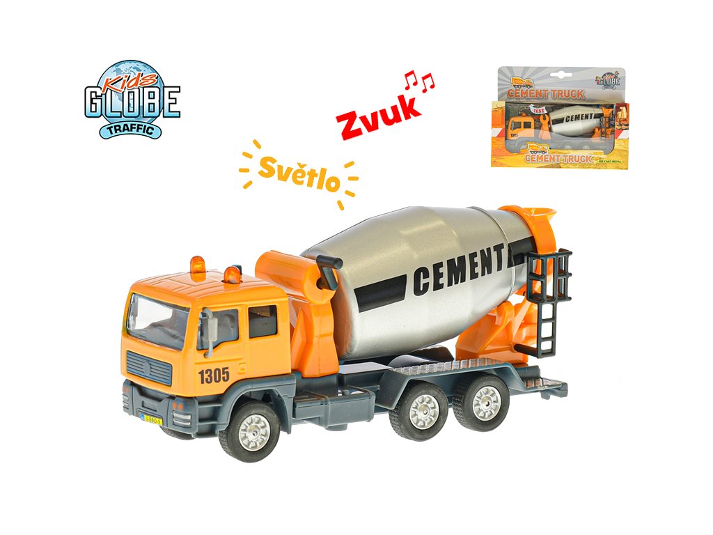 Kids Globe Traffic auto míchačka 15,5cm kov na zpětný chod na baterie se světlem a zvukem v krabičce