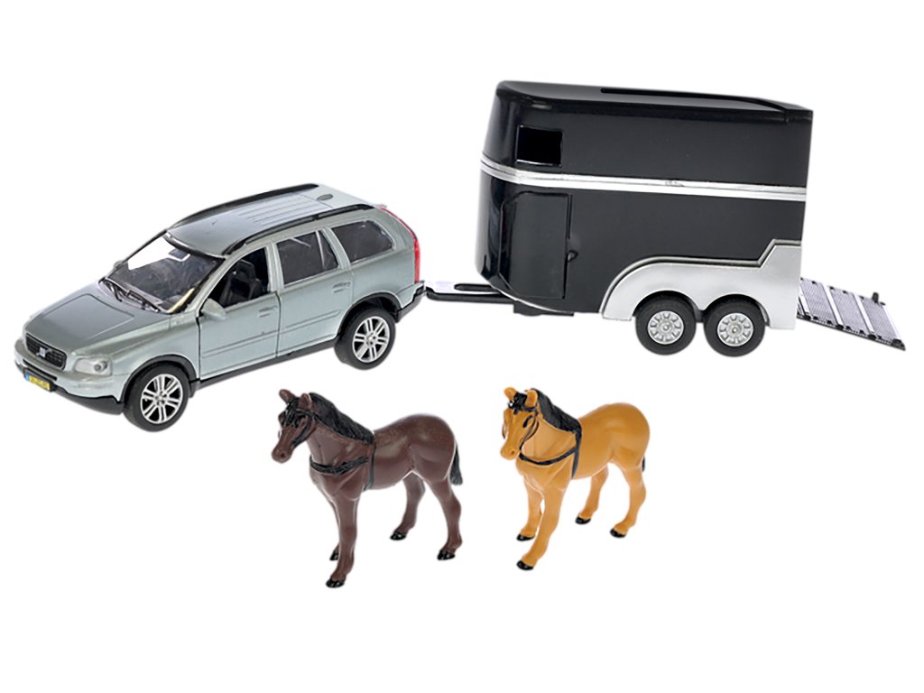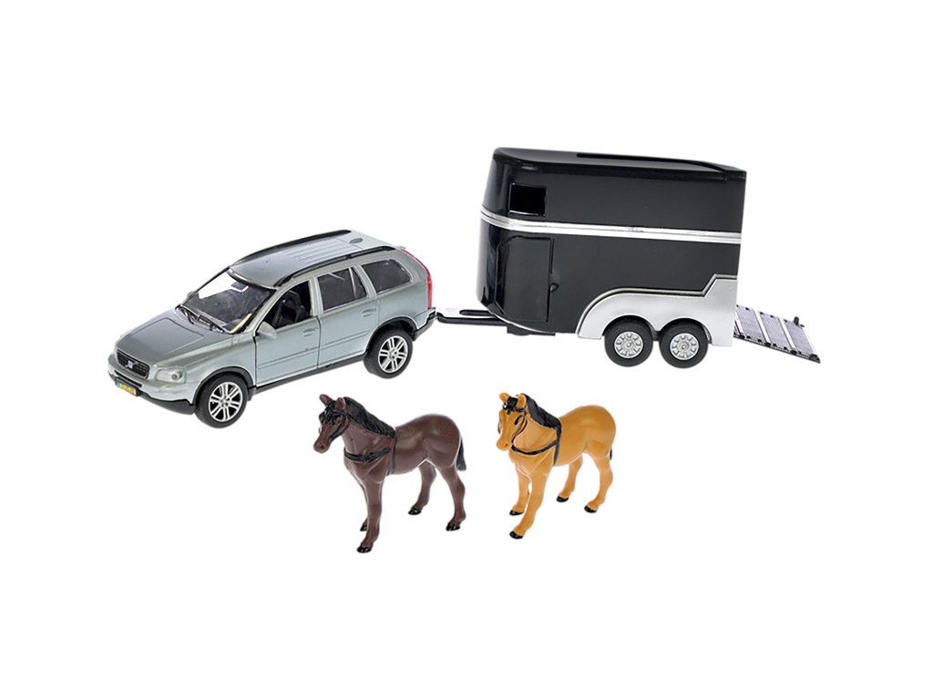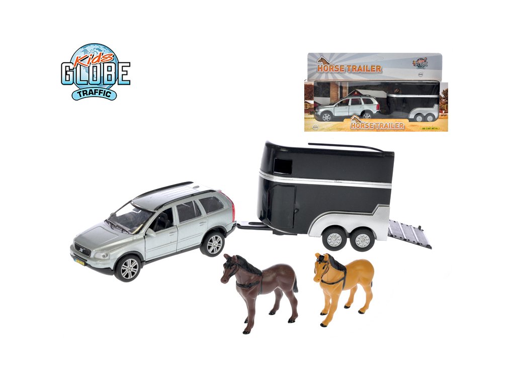Kids Globe Traffic Volvo XC90 14cm kov zpětný chod s přívěsem pro koně v krabičce