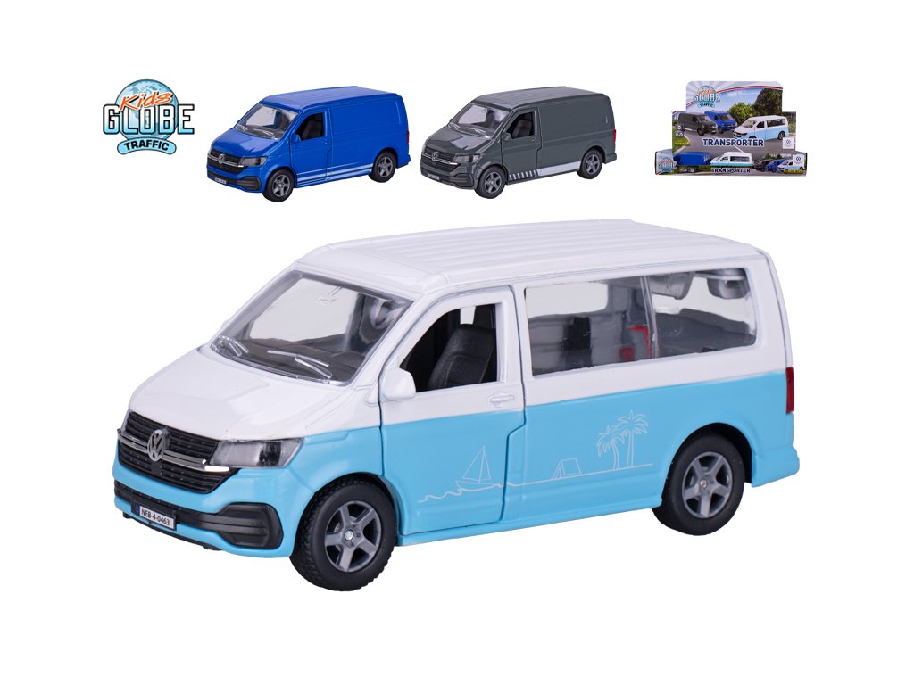 Kids Globe Traffic VW Transporter 13,5cm kov zpětný chod 3barvy 12ks v DBX