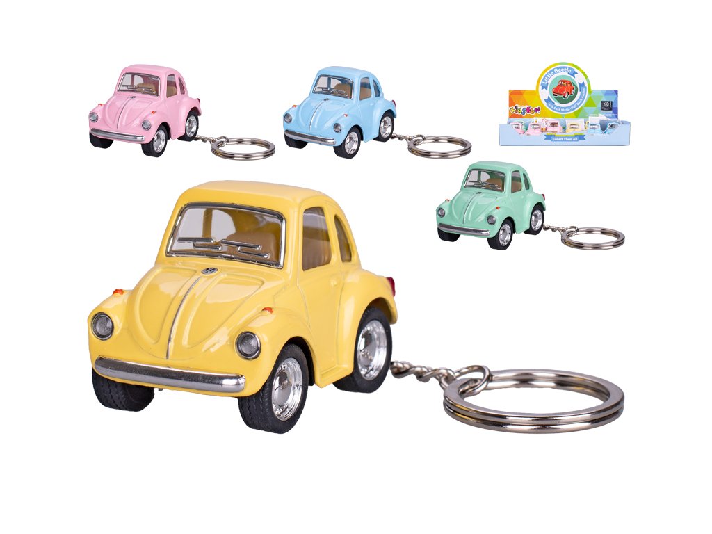 Kinsfun Volkswagen Beetle kov 5,5cm zpětný chod/přívěsek na klíče 4barvy 12ks v DBX