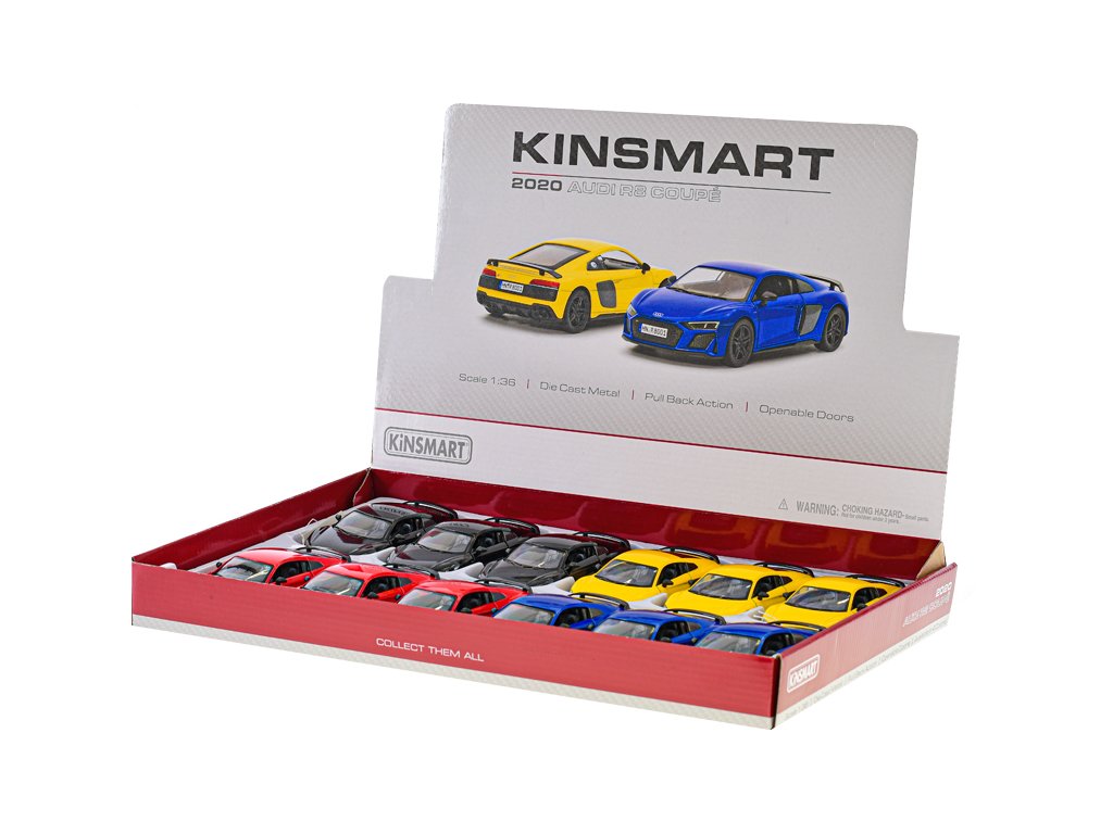Kinsmart Audi R8 coupe kov 1:36 13cm na zpětný chod 4barvy 12ks v DBX