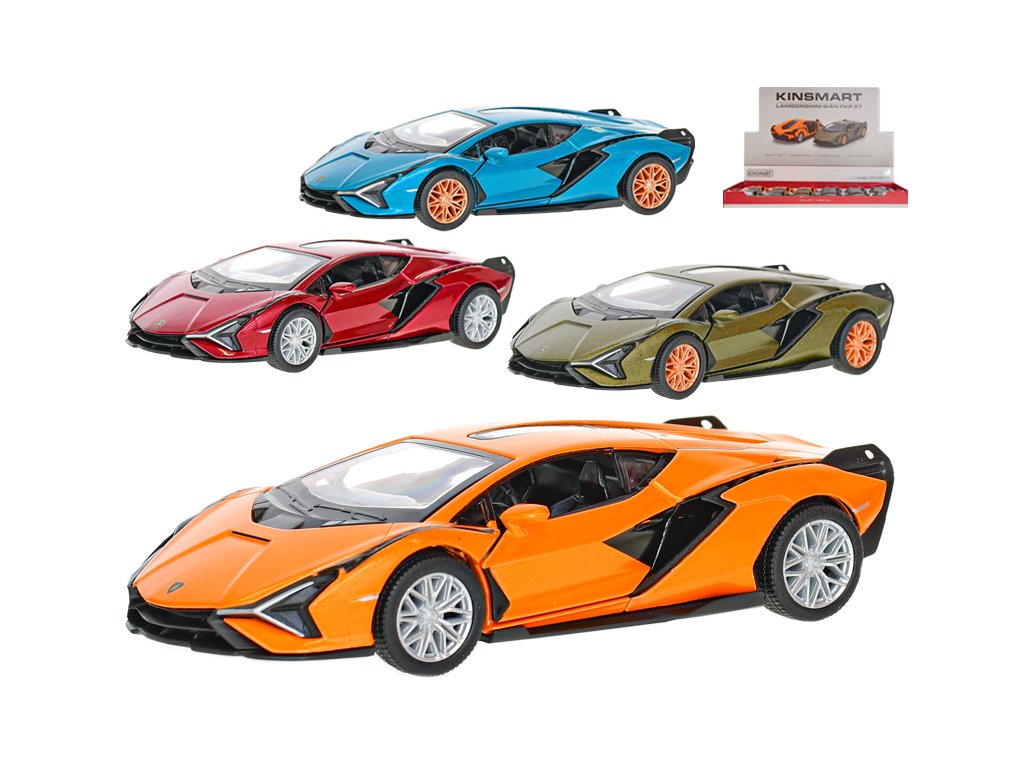 Kinsmart Auto Lamborghini Sián 12,5cm 1:40 kov zpětný chod 4barvy 12ks v DBX