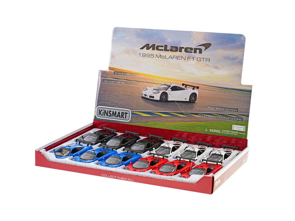 Kinsmart Auto McLaren F1 GTR 1:34 kov na zpětný chod 4barvy 12ks v DBX