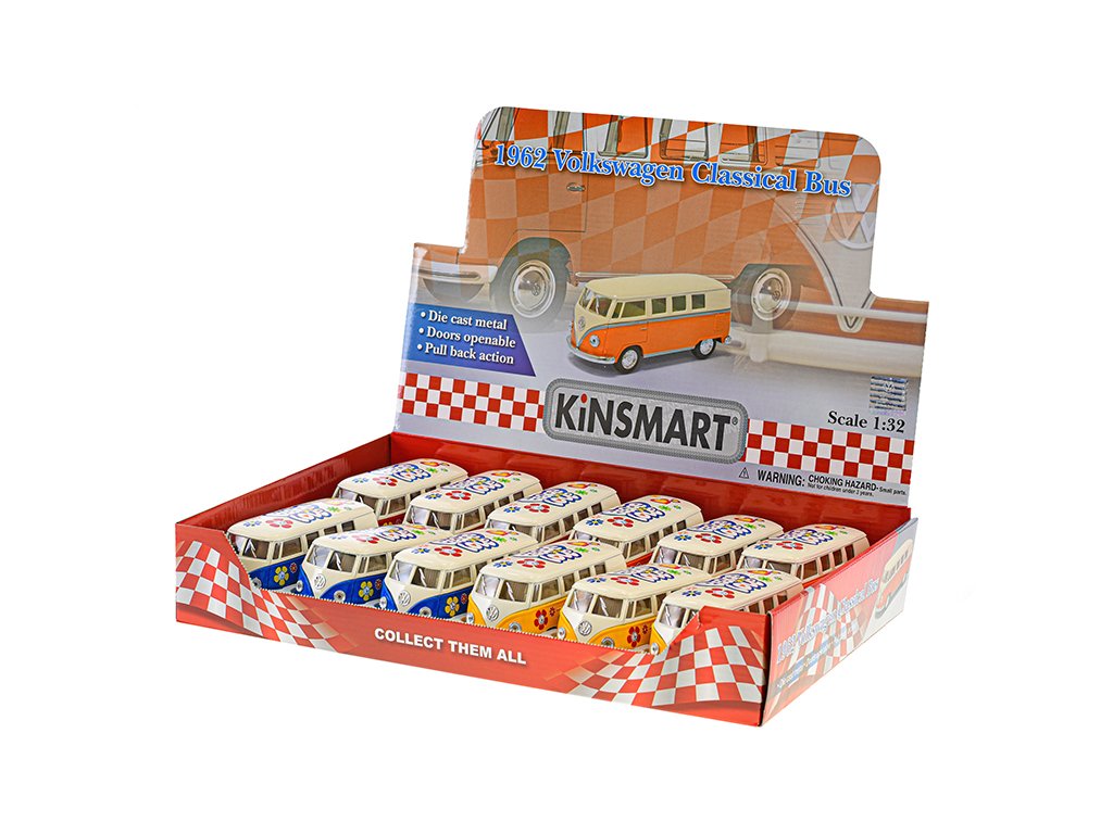 Kinsmart Autobus Volkswagen 13cm kov na zpětný chod 4barvy 12ks v DBX
