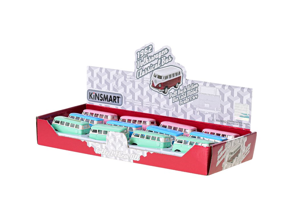 Kinsmart Autobus VW Classical 1962 1:64 7cm kov zpětný chod 3barvy 12ks v DBX