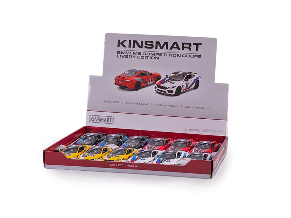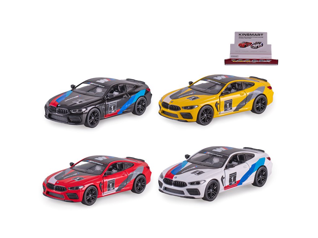 Kinsmart BMW M8 Competition Coupe 13cm 1:38 kov zpětný chod 4barvy 12ks v DBX