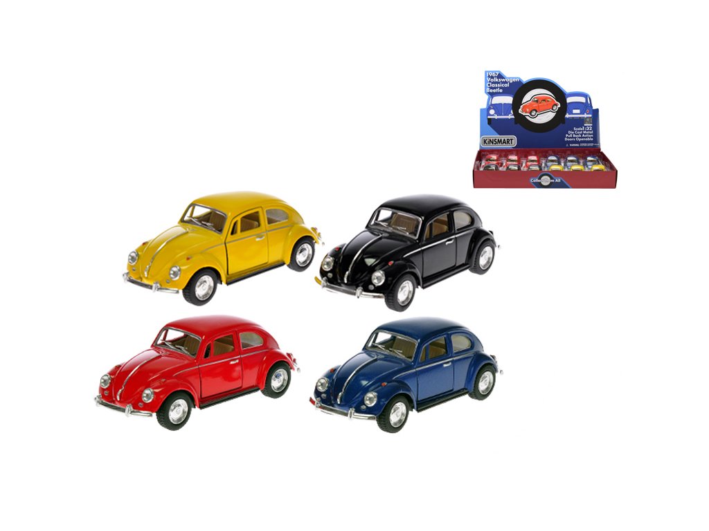 Kinsmart Classical Beetle 1:32 13cm kov zpětný chod 4barvy 12ks v DBX