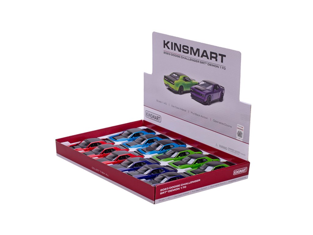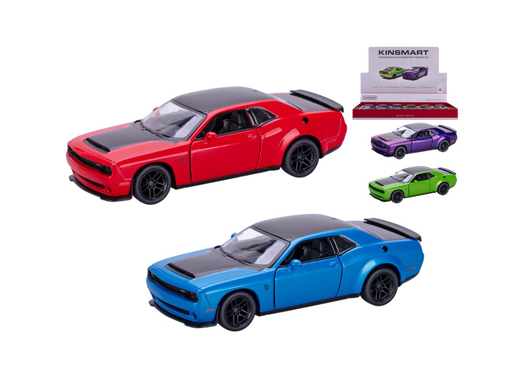 Kinsmart Dodge Challenger SRT 170 12,5cm 1:40 kov zpětný chod 4barvy 12ks v DBX