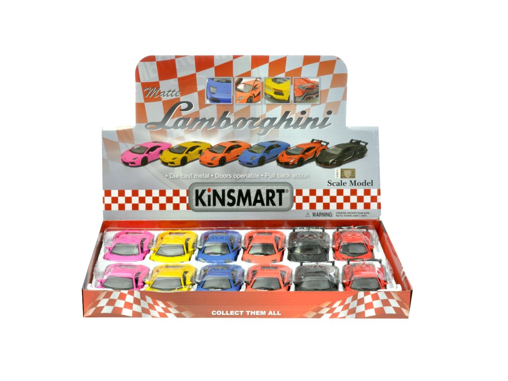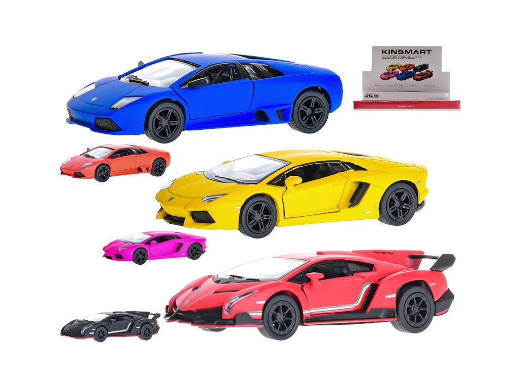 Kinsmart Lamborghini 1:36 13cm kov matný lak zpětný chod 3druhy 2barvy 12ks v DBX