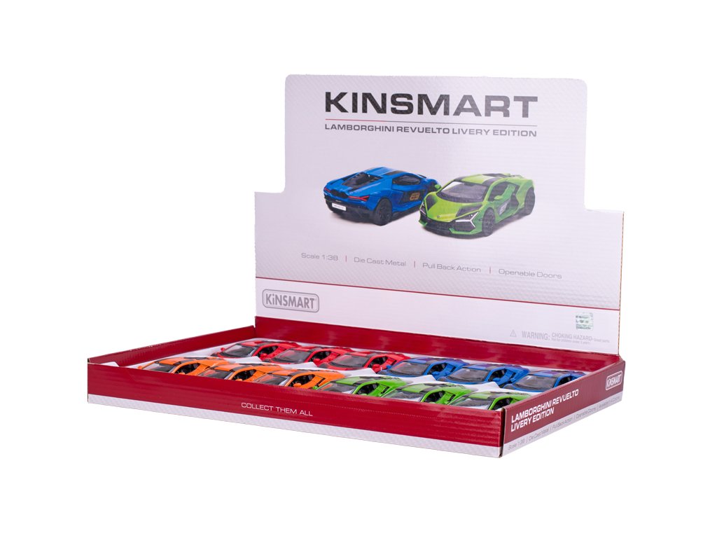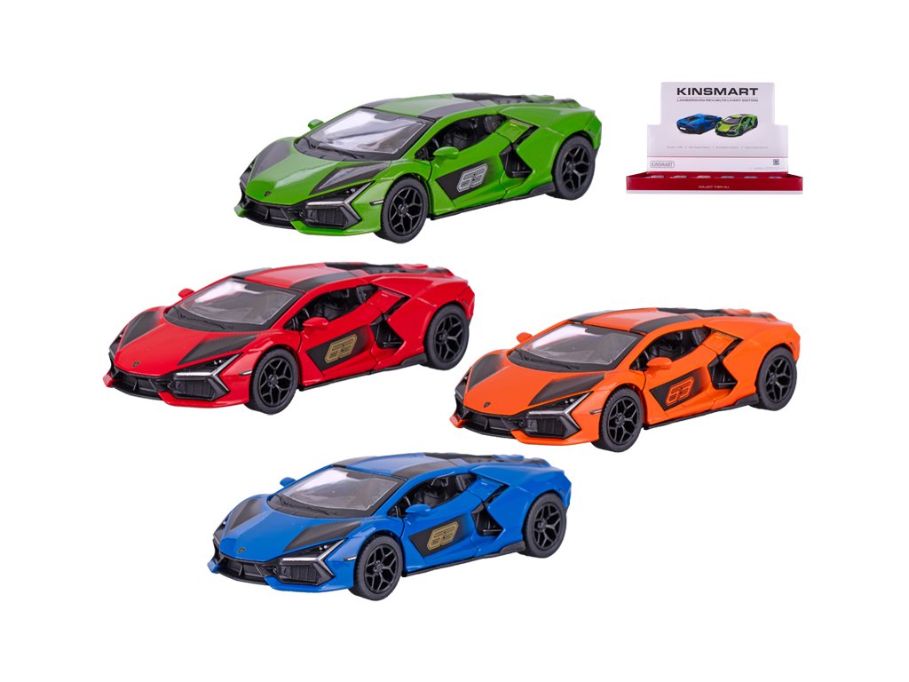 Kinsmart Lamborghini Revuelto 13cm 1:38 kov zpětný chod 4barvy 12ks v DBX