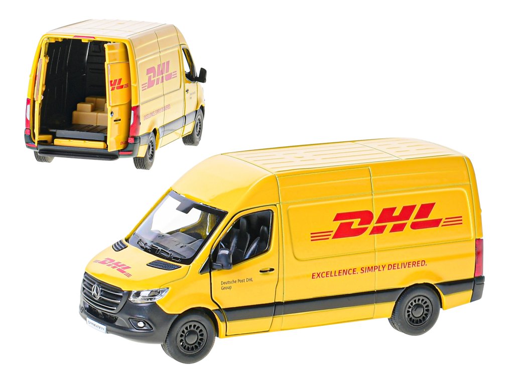 Kinsmart Mercedes-Benz DHL 12,5cm kov na zpětný chod 12ks v DBX