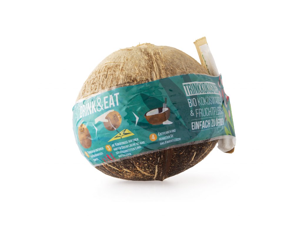 Kokosový ořech s brčkem "drink and eat" BIO (ks)