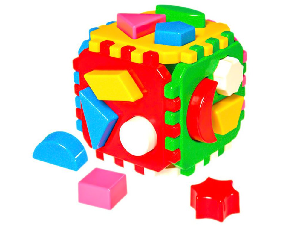 Kostka vkládací 12cm geometrické tvary 12m+ v síťce