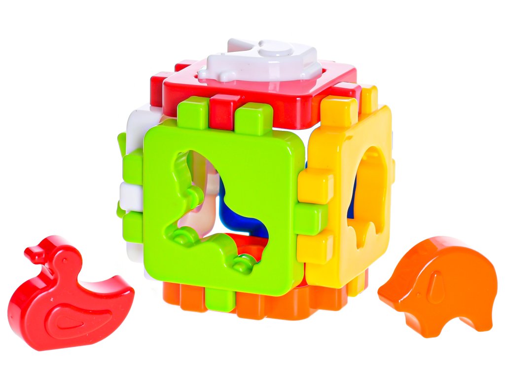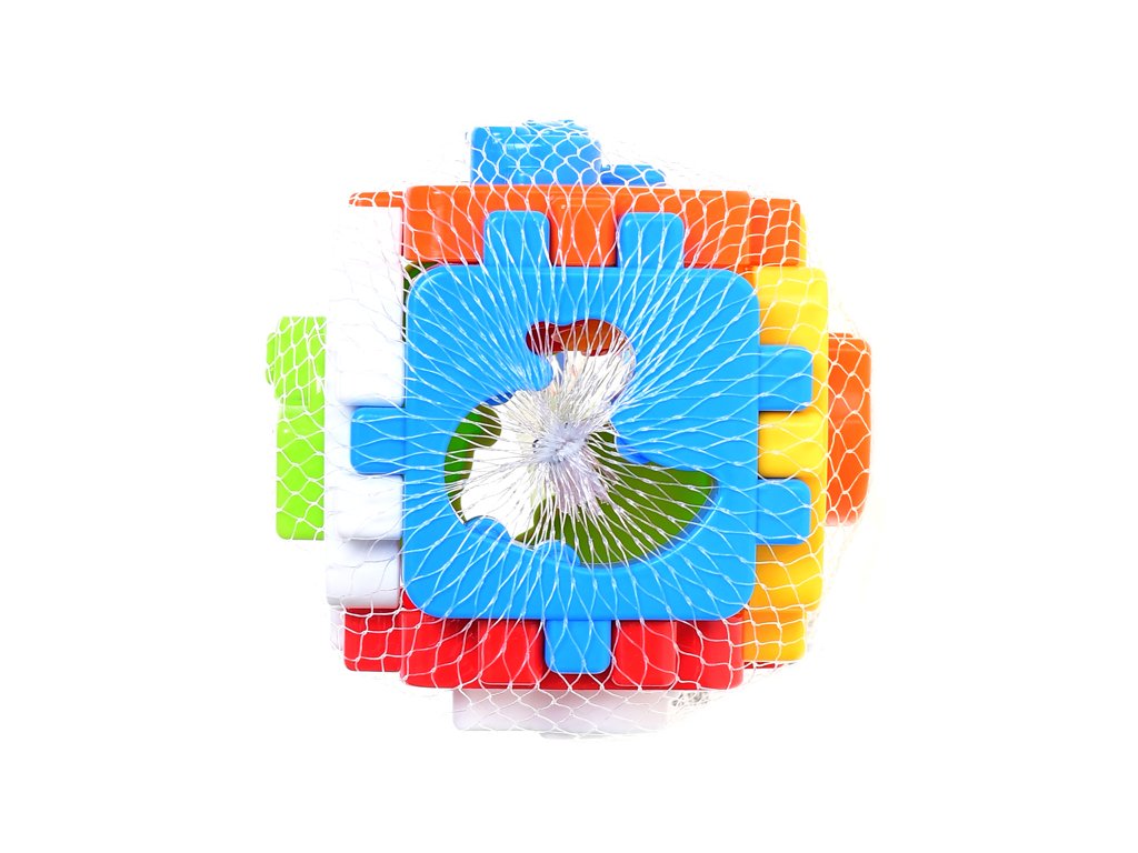 Kostka vkládací s domácími zvířátky 8,5cm 12m+ v síťce