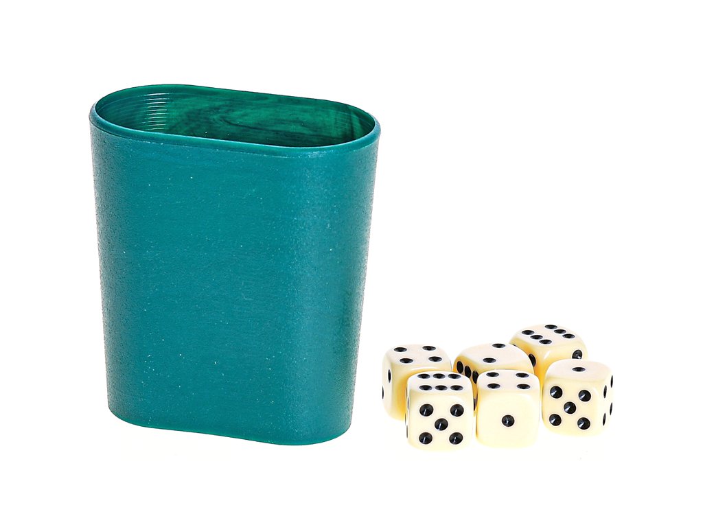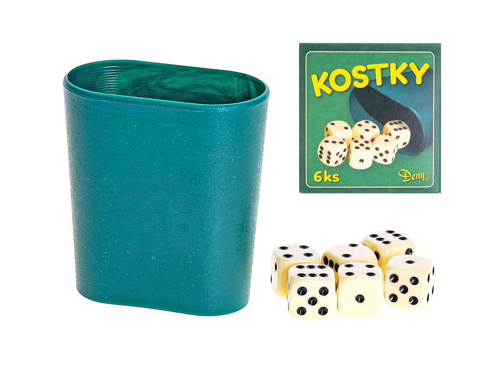 Kostky hrací 16mm 6ks s kelímkem v krabičce