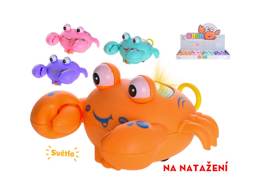 Krab 10cm na baterie jezdící na natažení se světlem 4barvy 12ks v DBX