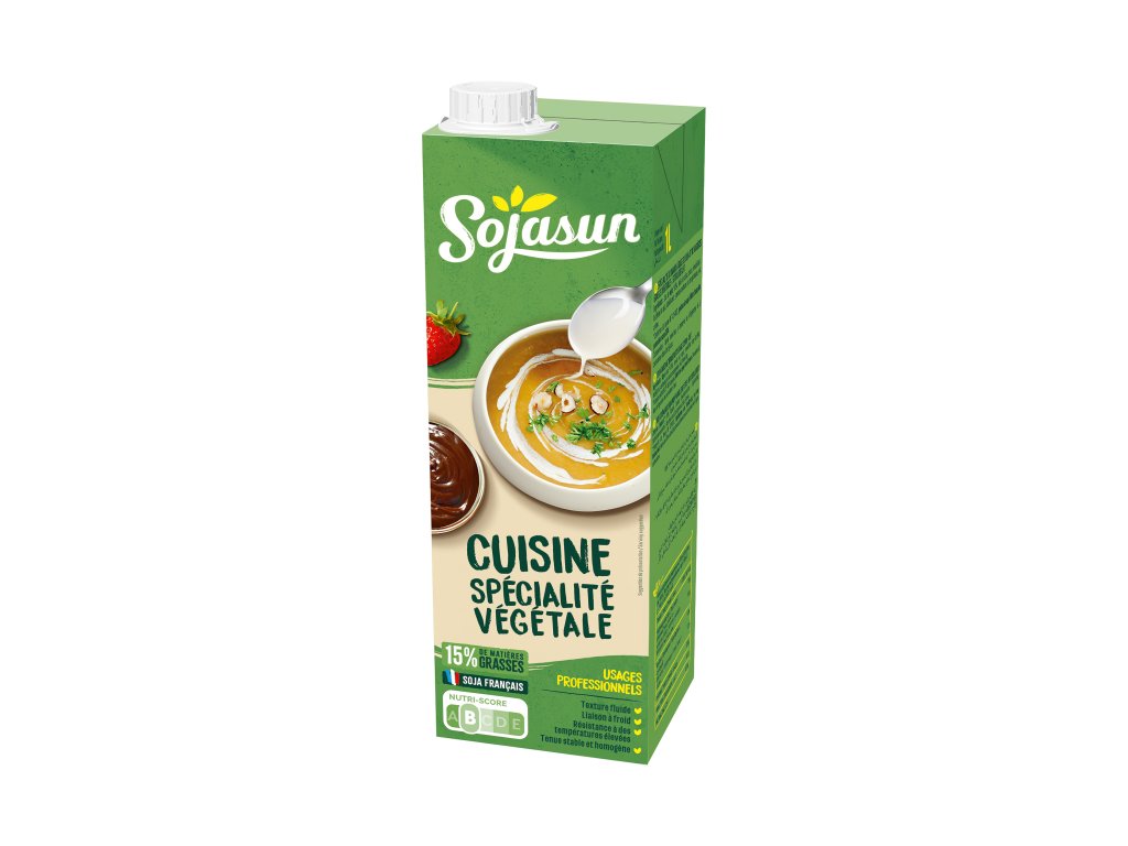 Sójová náhražka smetany Sojasun obsahuje 15 % tuku a je rostlinnou alternativou mléčné smetany. Při vaření ji lze použít jako běžně dostupnou smetanu. Neobsahuje laktózu a je zcela veganská.Specifikace