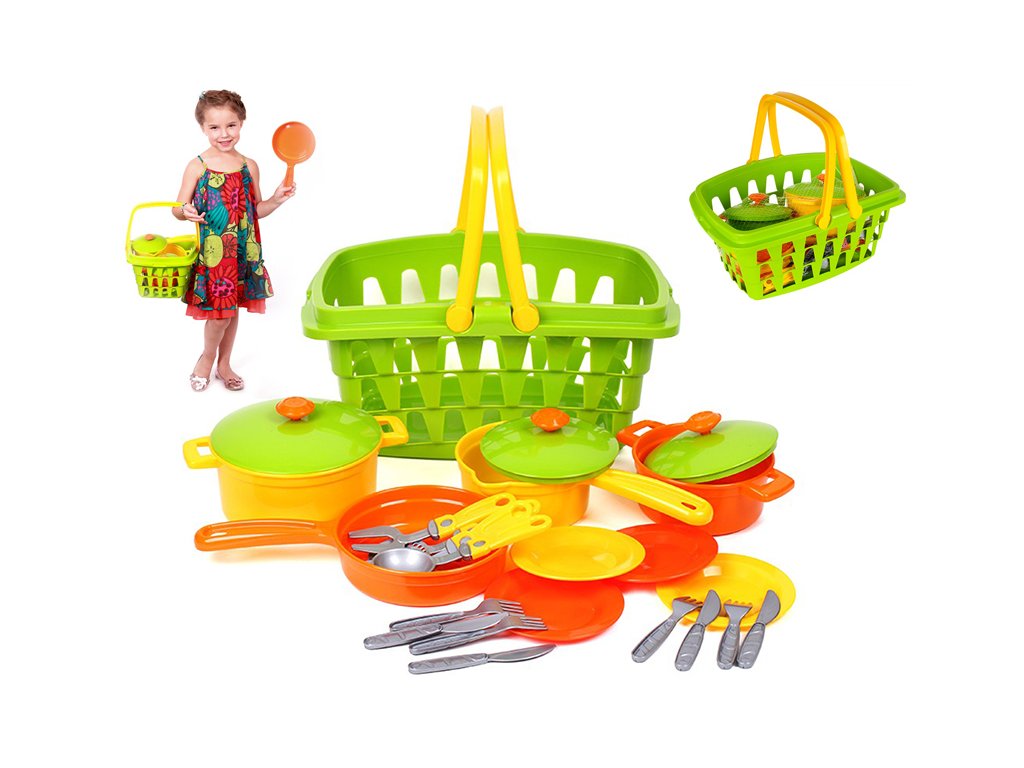 Kuchyňský set s košíkem + 23ks nádobí v síťce