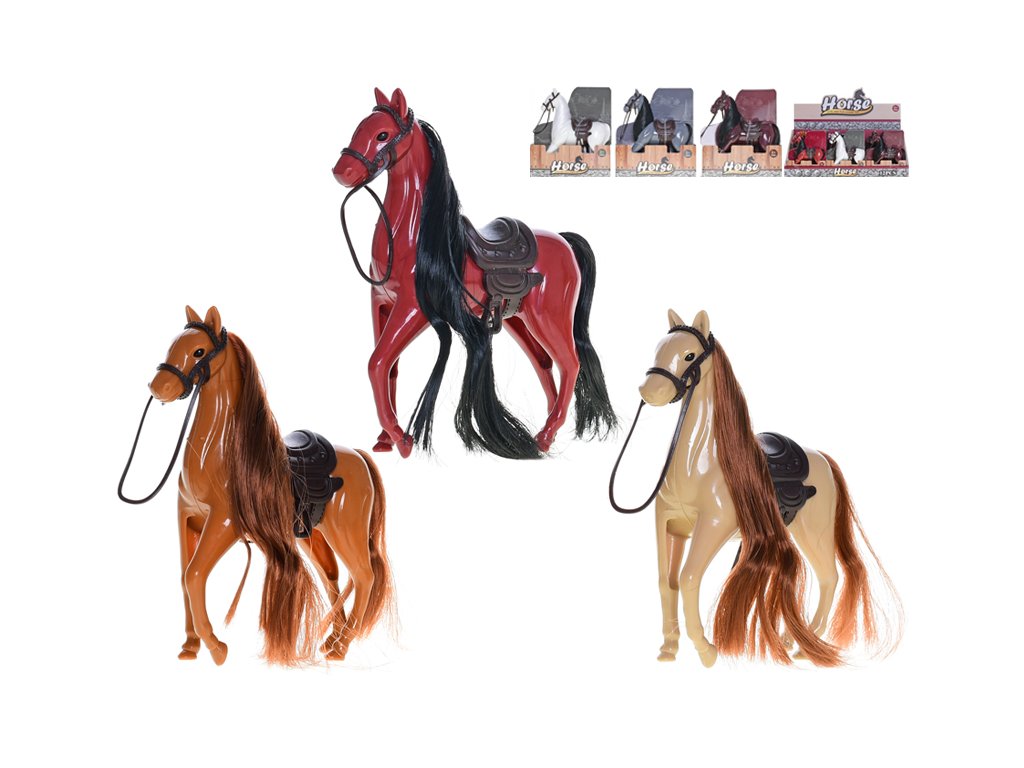Kůň 12cm stojící 6barev se sedlem v krabičce 12ks v DBX