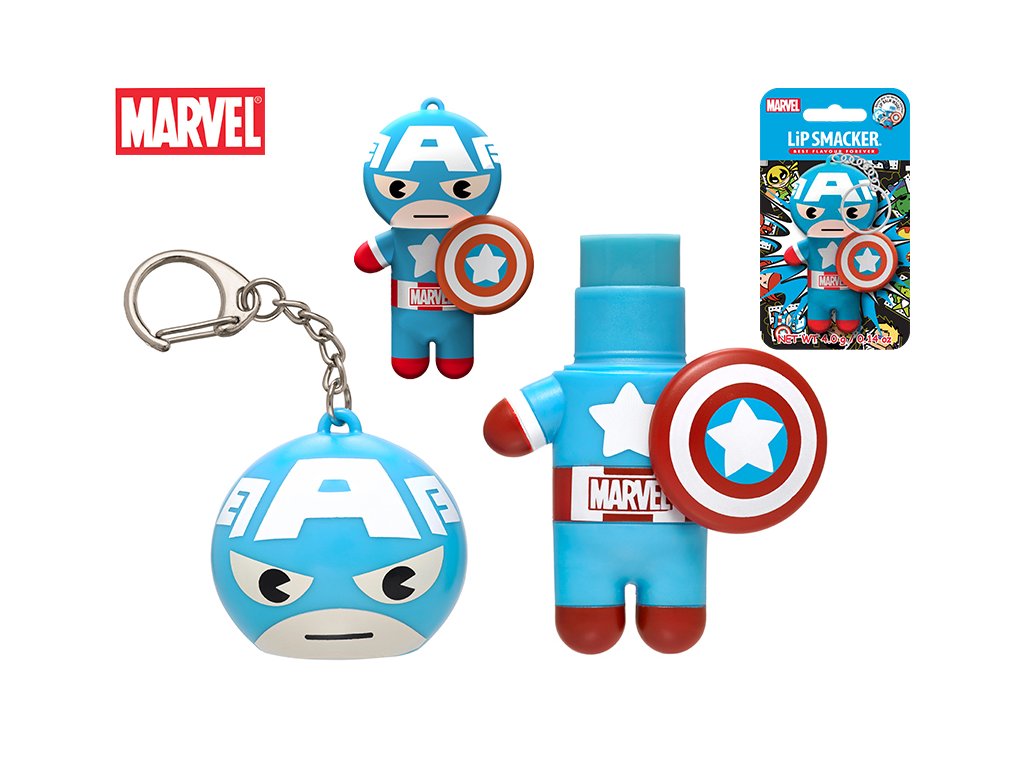 Lip Smacker balzám na rty/klíčenka 4g Kapitán Amerika s příchutí borůvky na kartě