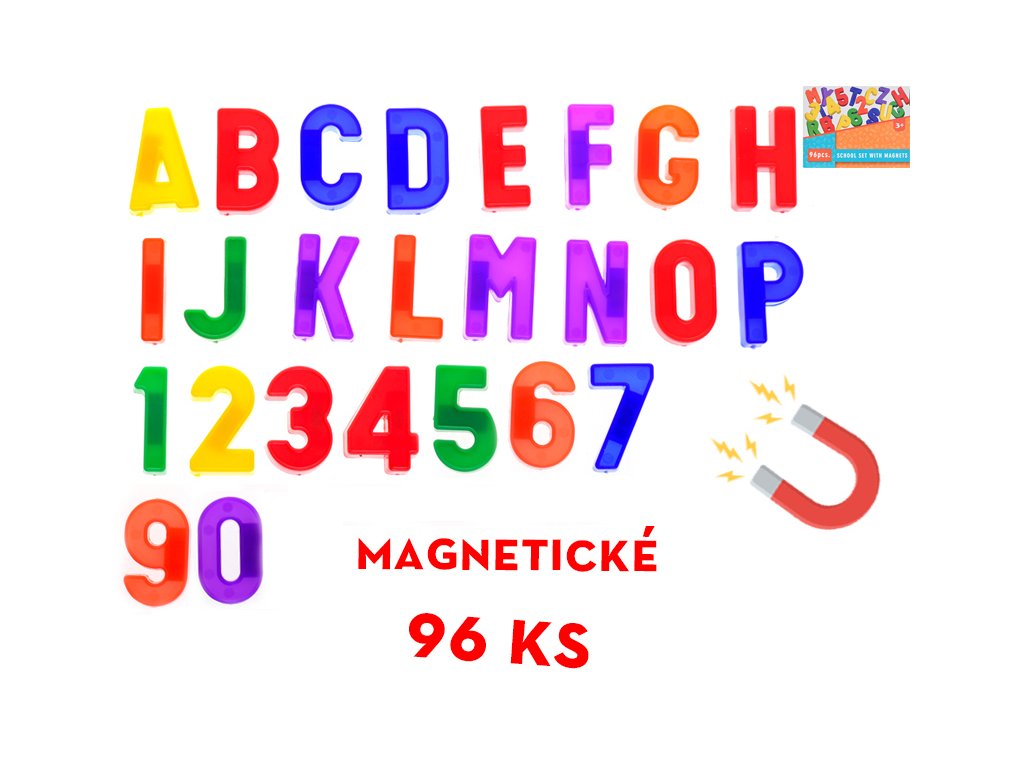 Magnety písmena a číslice 96ks v krabičce