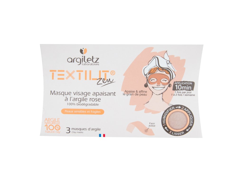 Maska pleťová zklidňující textilní s růžovým jílem 3 ks ARGILETZ