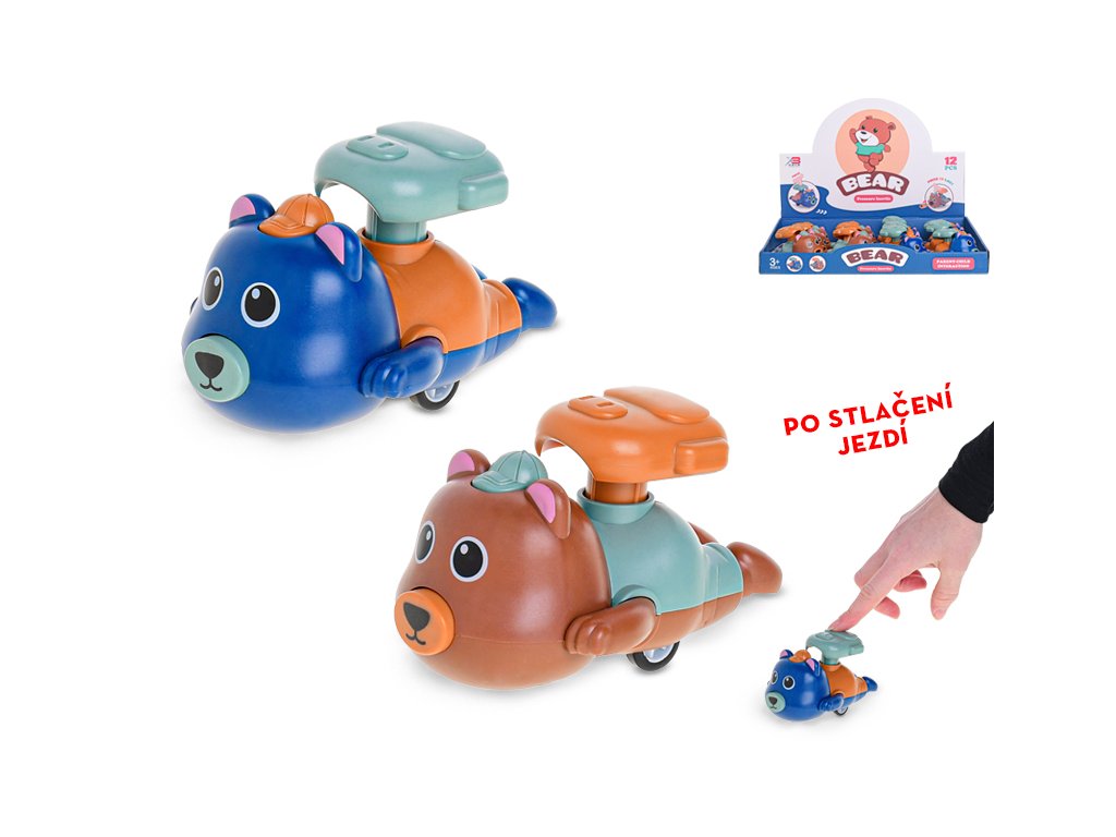 Medvěd 11cm po stlačení jezdící 2barvy 12ks v DBX