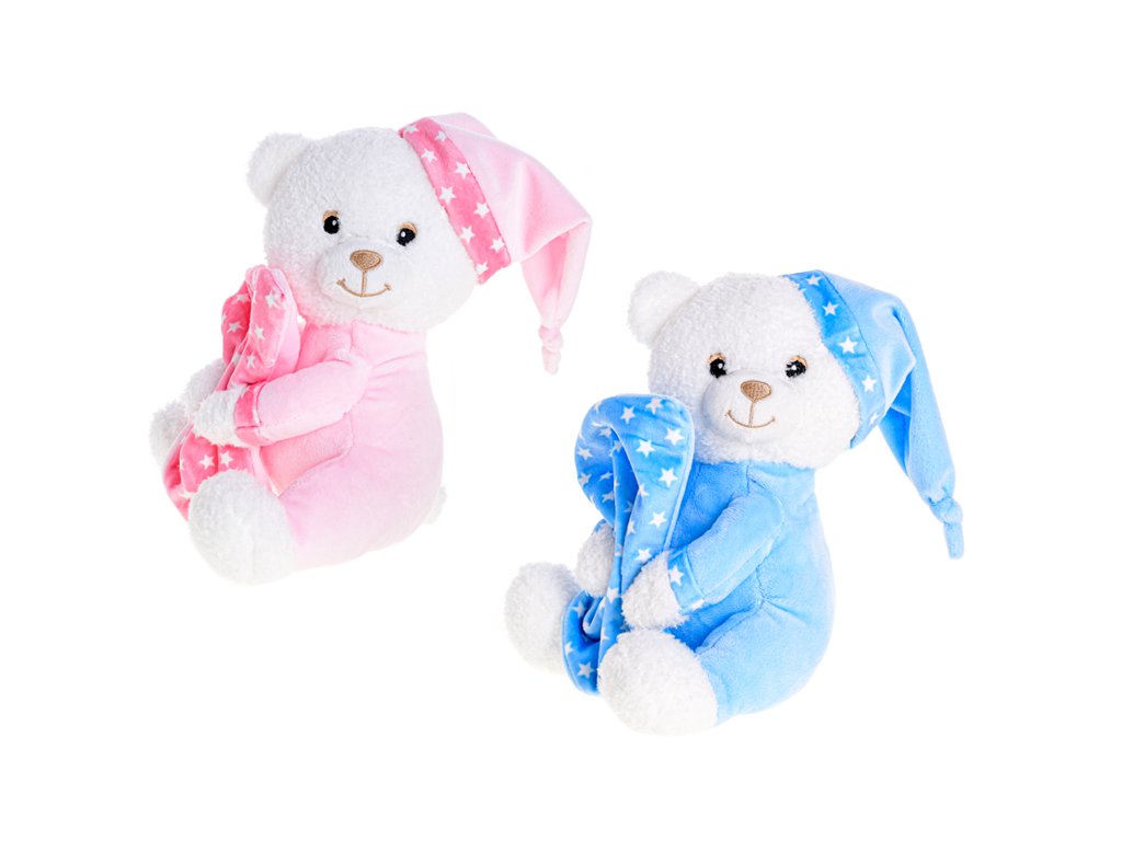 Medvěd plyšový 20cm sedící s chrastítkem 2barvy 0m+ v sáčku