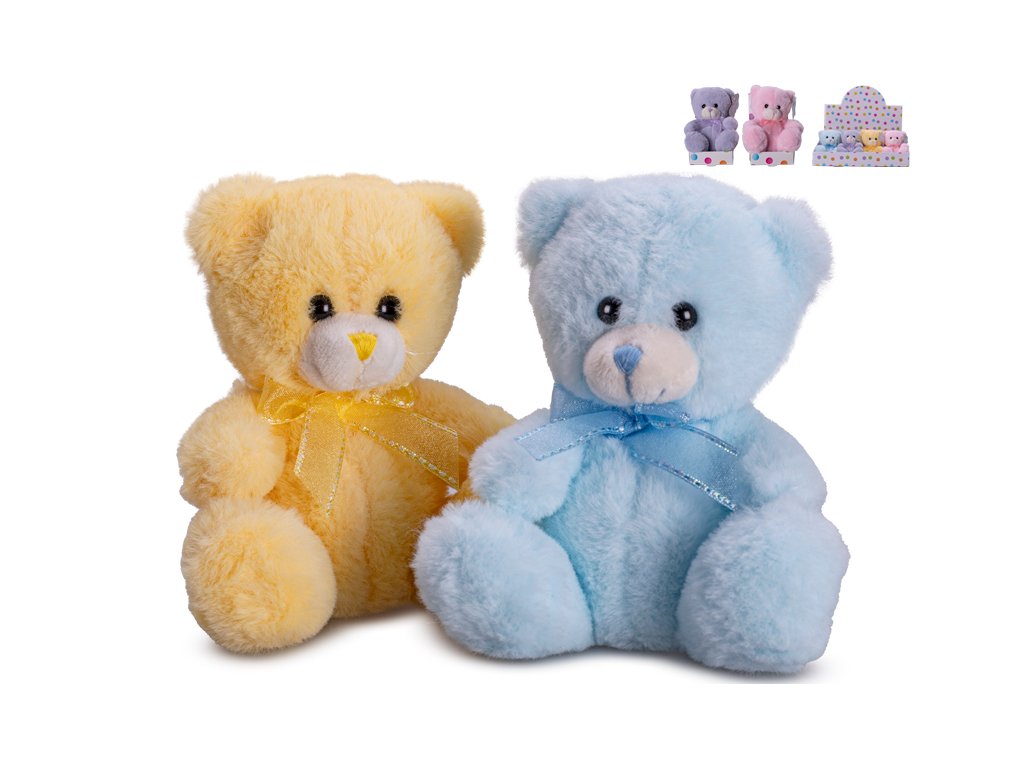 Medvídek plyšový 12cm sedící s mašlí 4barvy v krabičce 12ks v DBX