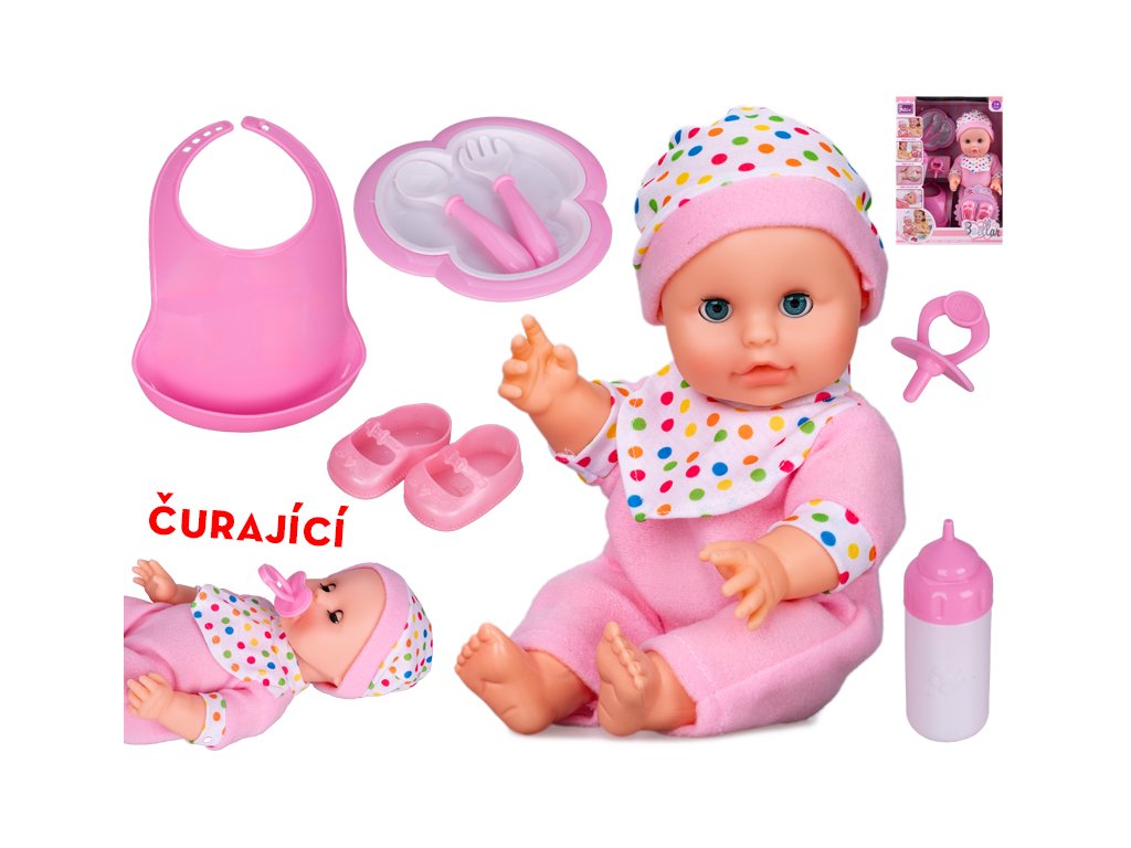 Miminko mrkací 30cm tvrdé tělo čurající s doplňky v krabičce