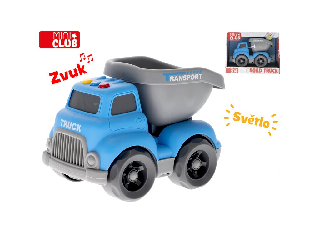 Mini Club auto sklápěčka 16cm volný chod na baterie se světlem a zvukem 18m+ v krabičce