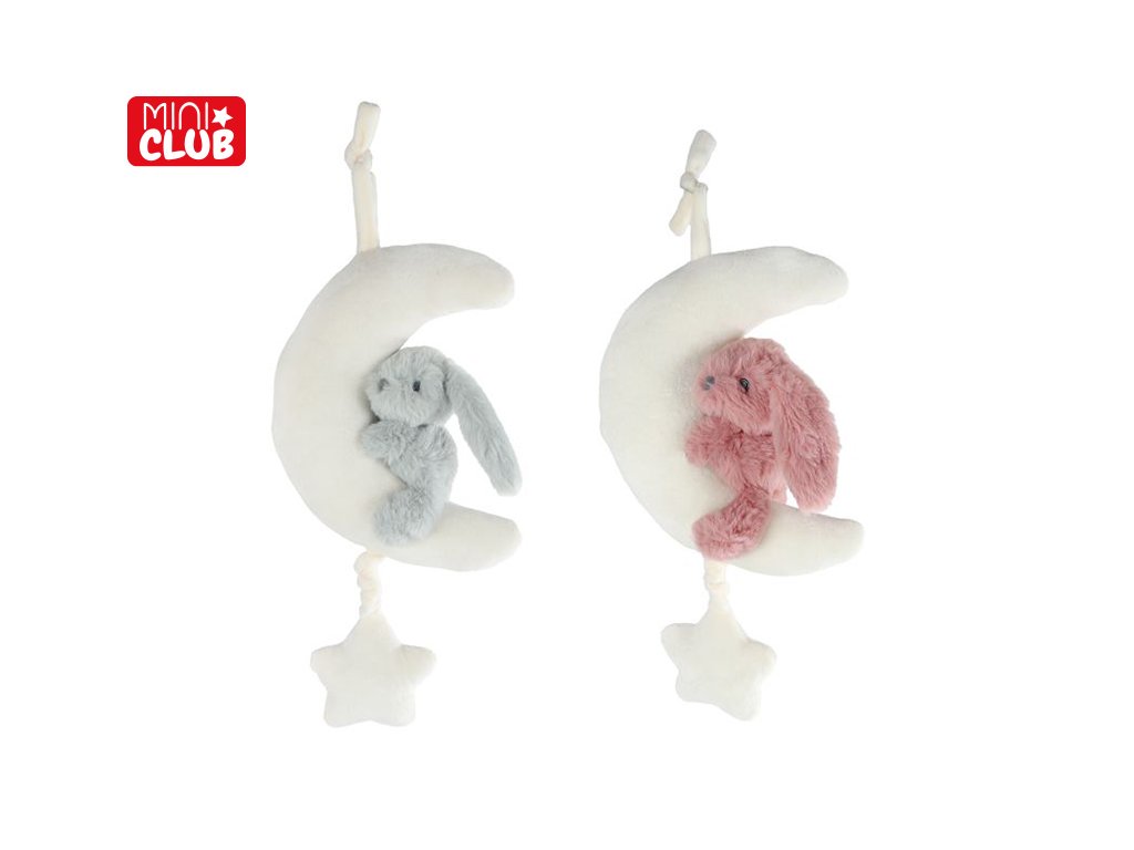 Mini Club měsíček plyšový 35cm se zajíčkem a hracím strojkem na natažení 2barvy 0m+