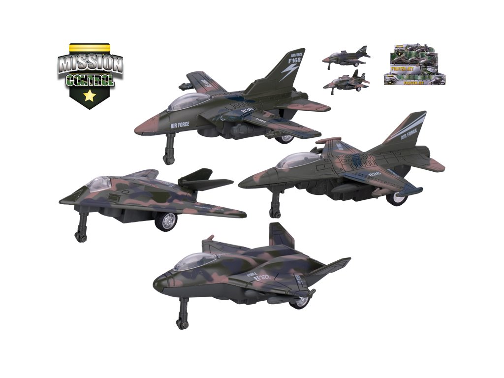Mission Control letadlo vojenské 12-13,5cm kov zpětný chod 6druhů 6ks v DBX