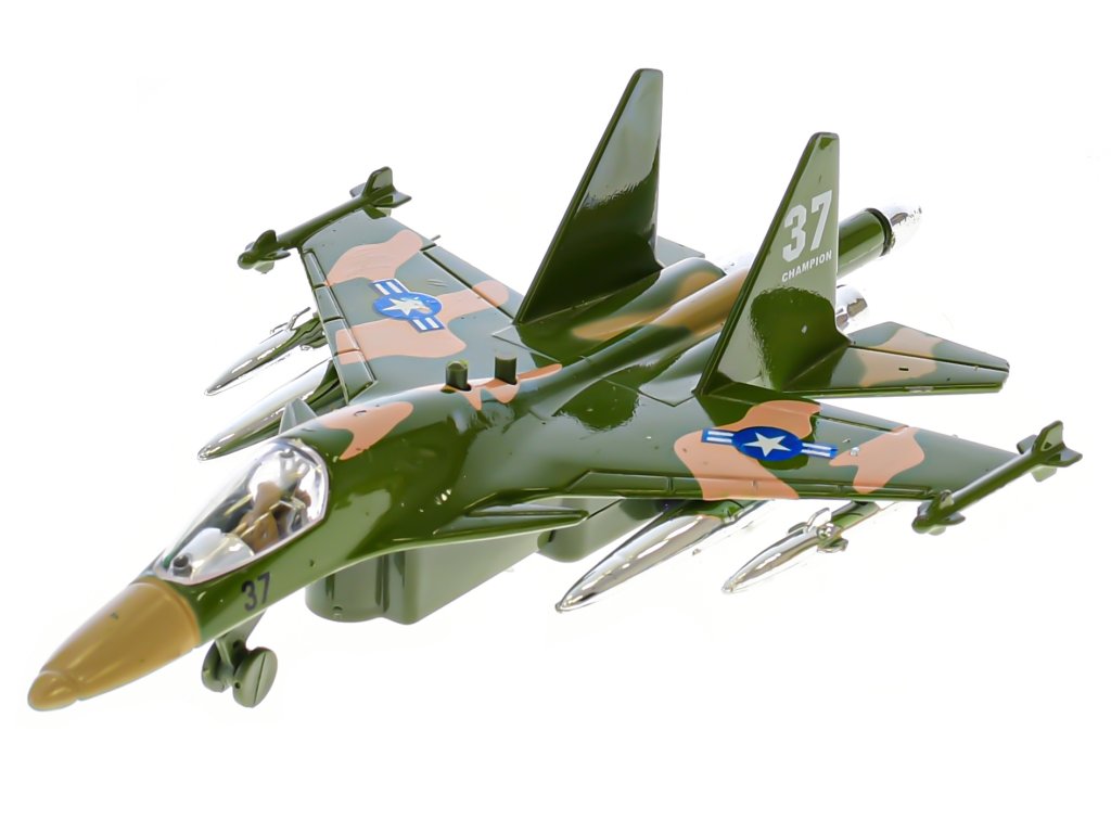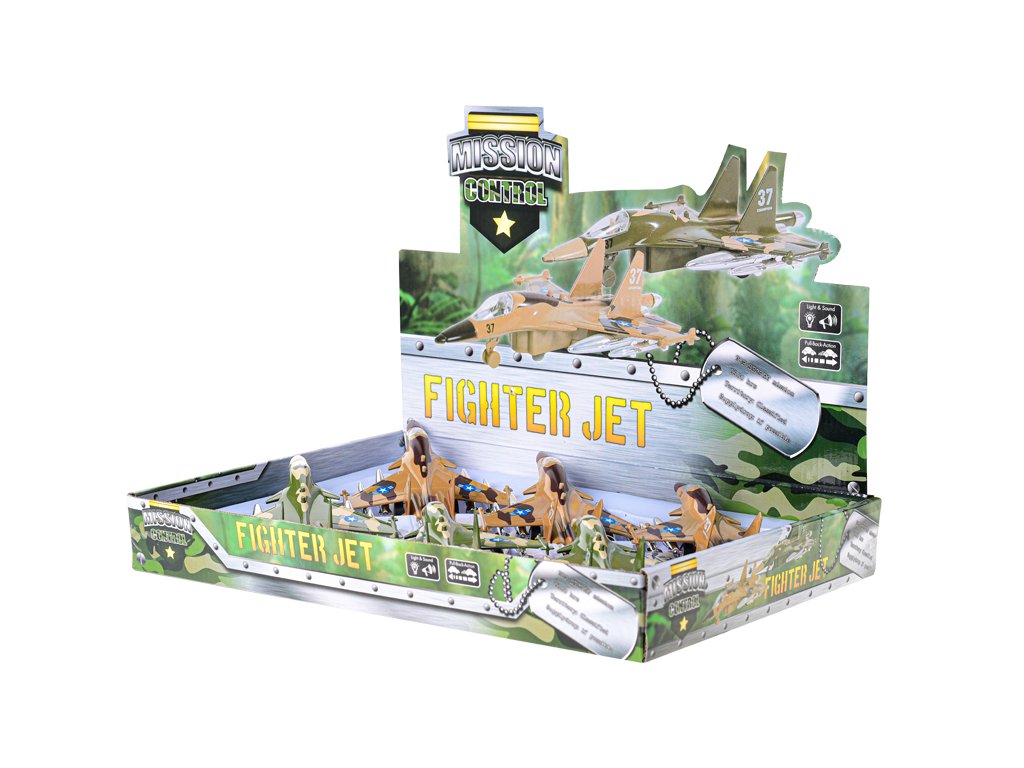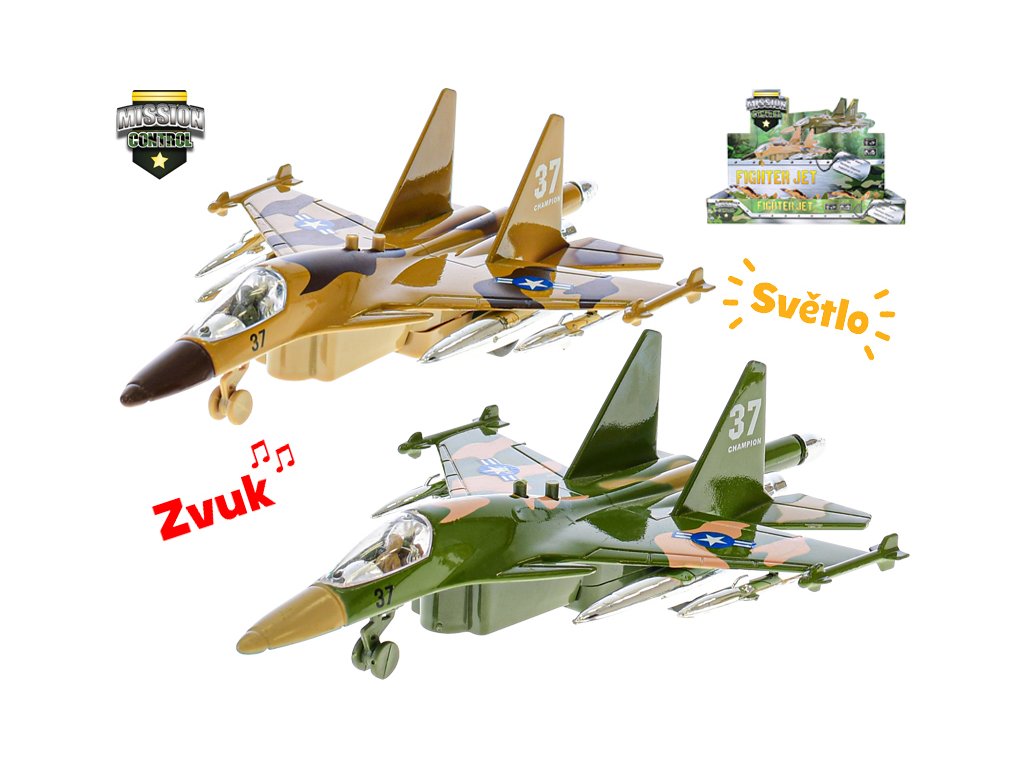 Mission Control letadlo vojenské 19cm kov zpětný chod na baterie + světlo a zvuk 2barvy 6ks v DBX