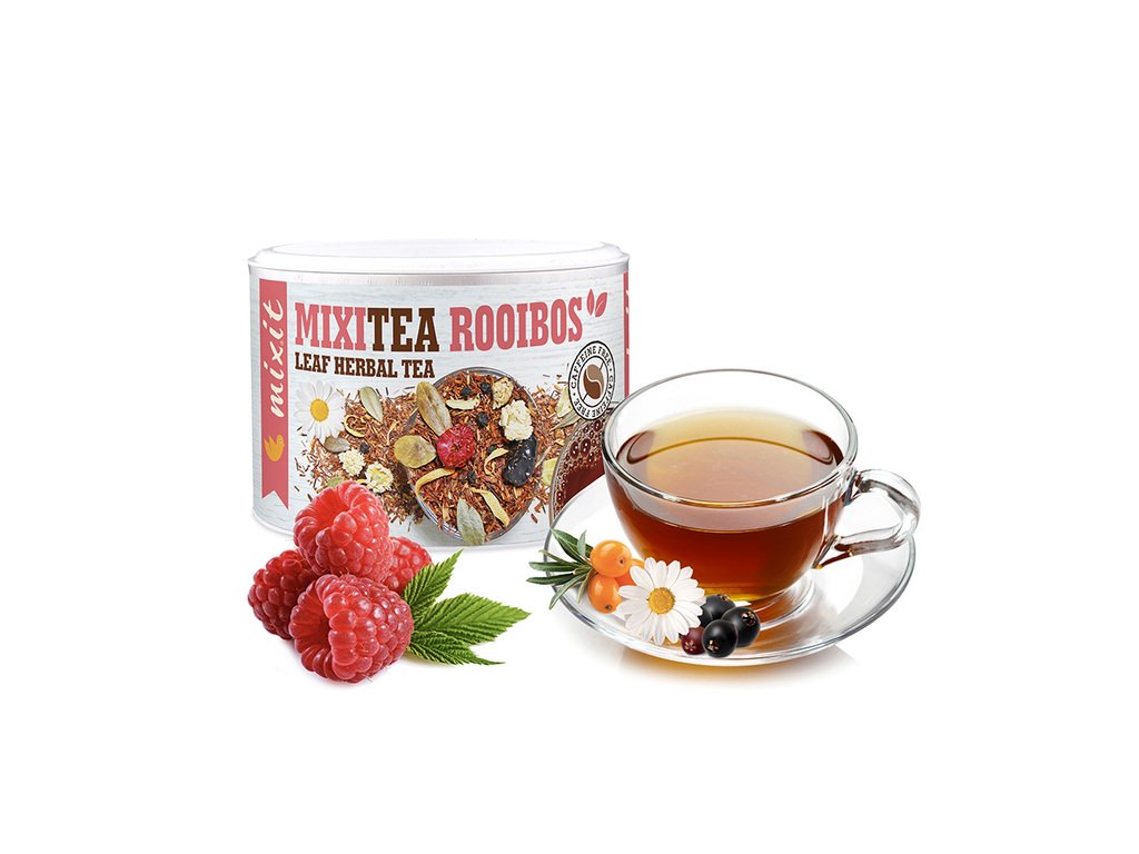 Rooibos je boss, šéf všech čajů - ačkoli neobsahuje kofein. Vyrábí se z listů čajovce kapského, který roste pouze na malém území v Západním Kapsku. Tento Mixitea obsahuje klikvu velkoplodou, bezinku, rakytník, maliny, květy pomerančovníku, heřmánku římského a listy brusinky, s jejichž pomocí vás zanese daleko za rovník až do Jižní Afriky k mysu Dobré naděje