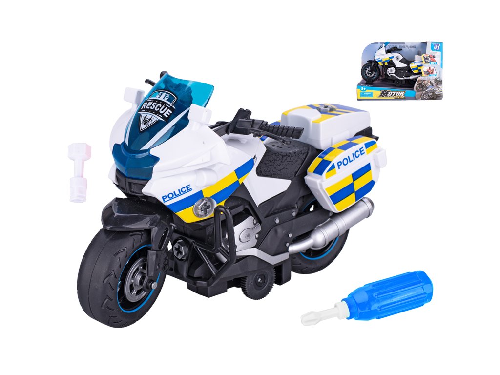 Motorka policejní šroubovací 22cm na setrvačník v krabičce