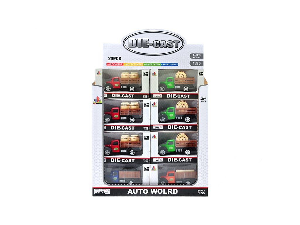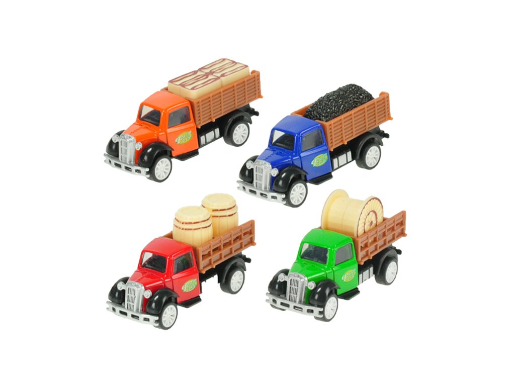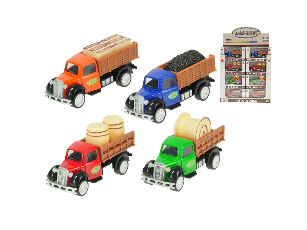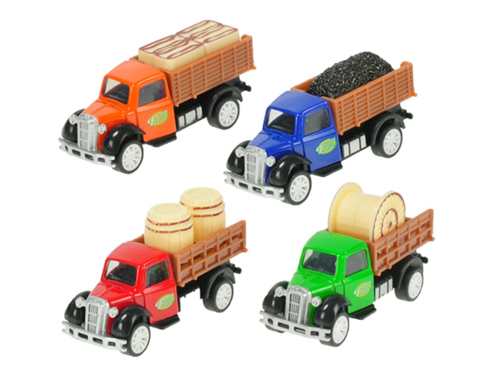 Nákladní auto farmářské kov 8,5cm 1:55 zpětný chod 4druhy v krabičce 24ks v DBX